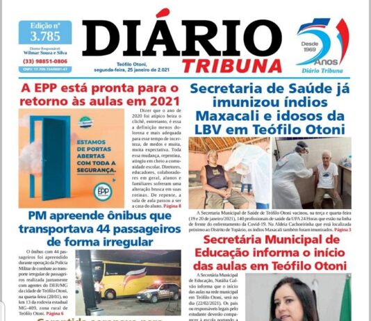 Diário Tribuna, 25 de Janeiro 2021, Teófilo Otoni/MG