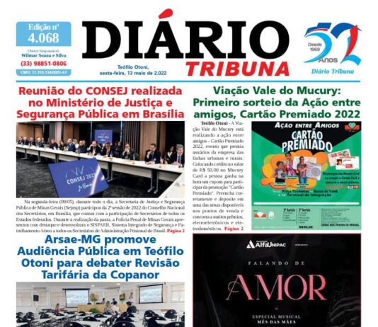 Diário Tribuna, 13 de Maio 2022, Teófilo Otoni – MG