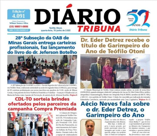 Diário Tribuna, 15 de Junho 2022, Teófilo Otoni – MG