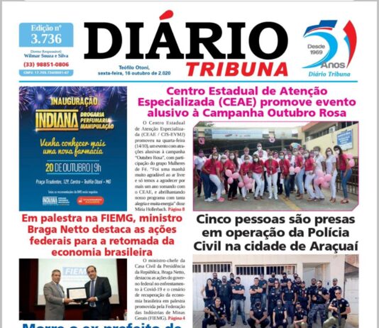 Diário Tribuna, 16 de Outubro 2020, Teófilo Otoni – MG