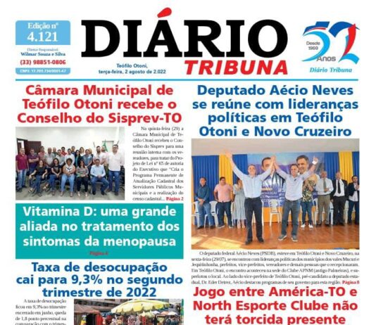 Diário Tribuna, 02 de Agosto 2022, Teófilo Otoni – MG