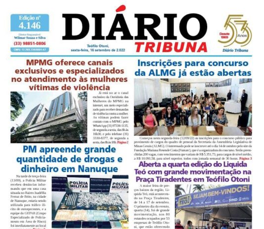 Diário Tribuna, 16 de Setembro 2022, Teófilo Otoni – MG