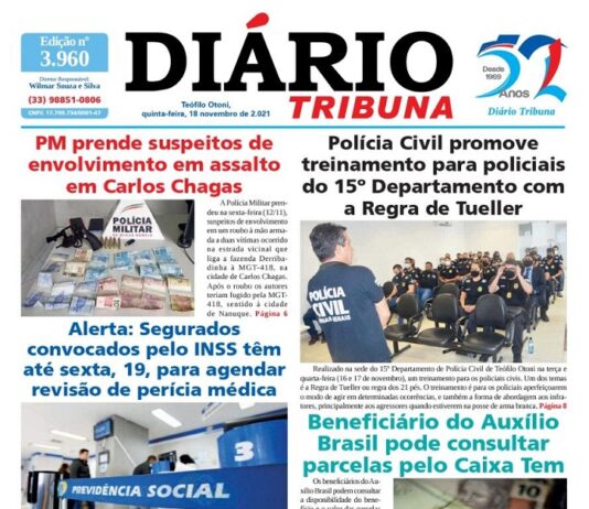 Diário Tribuna, 18 de Novembro 2021, Teófilo Otoni – MG