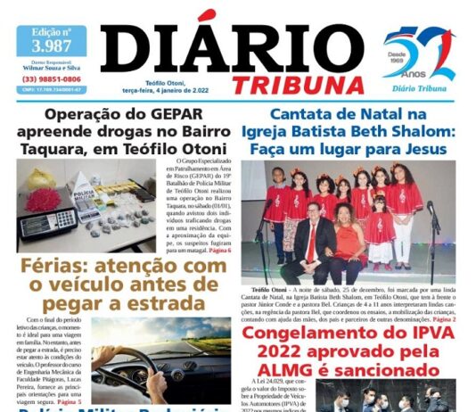 Diário Tribuna, 04 de Janeiro 2022, Teófilo Otoni – MG