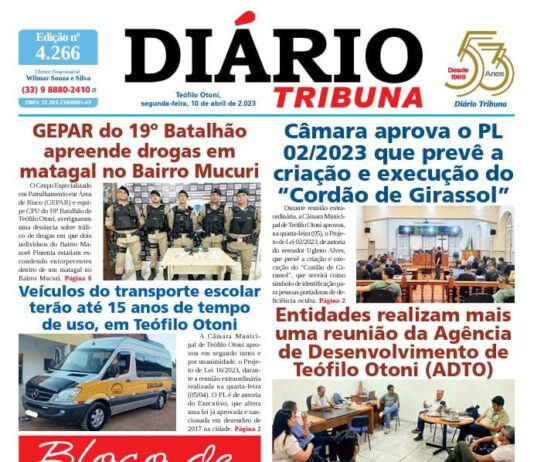 Diário Tribuna, 10 de Abril 2023, Teófilo Otoni – MG