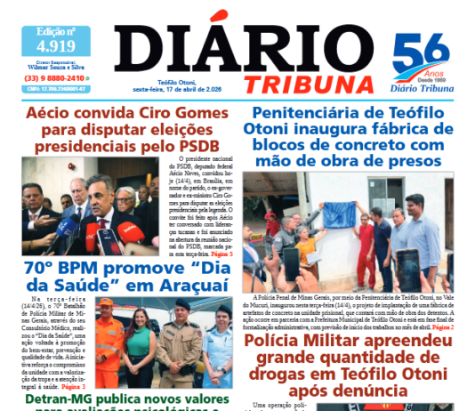 Diário Tribuna, 17 de Abril de 2026, Teófilo Otoni – MG
