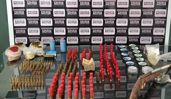 Um dos suspeitos disse aos militares que na cidade havia um homem de 70 anos que estaria vendendo munições e apetrechos para armas de fogo. Foram feitas novas diligências sendo encontrado o local e durante buscas foram apreendidos 01 garrucha, 338 cartuchos de calibres diversos, 02 sacos e 05 latas de espoletas para espingarda chumbeira, 01 saco de espoleta para cápsula, 02 frascos plásticos com pólvora, 12 calibradores de munições calibre diversos, R$770 em dinheiro e um aparelho celular de procedência duvidosa. Os suspeitos e os materiais apreendidos foram encaminhados para à delegacia de Polícia Civil.