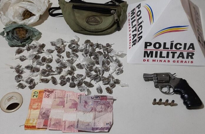 Os policiais foram ao local, o morador não foi localizado, mas a mãe dele autorizou a entrada no imóvel, onde foram localizados: 01 revólver calibre 38 com numeração raspada, 04 munições do mesmo calibre, 02 tabletes mais 96 buchas de maconha, e R$60. Os materiais foram encaminhados à delegacia de Polícia Civil em Teófilo Otoni.