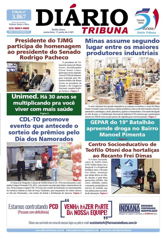 Diário Tribuna, 11 de Junho 2021, Teófilo Otoni – MG Por diariotribuna - 11/06/2021 0 586 Facebook Twitter Google+ Pinterest WhatsApp Acesse o link abaixo e veja a edição completa do Diário Tribuna desta sexta-feira (11/06/2021) https://diariotribuna.com.br/wp-content/uploads/2021/06/DIARIO-TRIBUNA-51-ANOS-11-JUNHO-2021.pdf