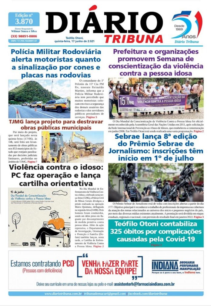 Diário Tribuna, 17 de Junho 2021, Teófilo Otoni – MG Por diariotribuna - 17/06/2021 0 588 Facebook Twitter Google+ Pinterest WhatsApp Acesse o link abaixo e veja a edição completa do Diário Tribuna desta quinta-feira (17/06/2021) https://diariotribuna.com.br/wp-content/uploads/2021/06/DIARIO-TRIBUNA-51-ANOS-17-JUNHO-2021.pdf