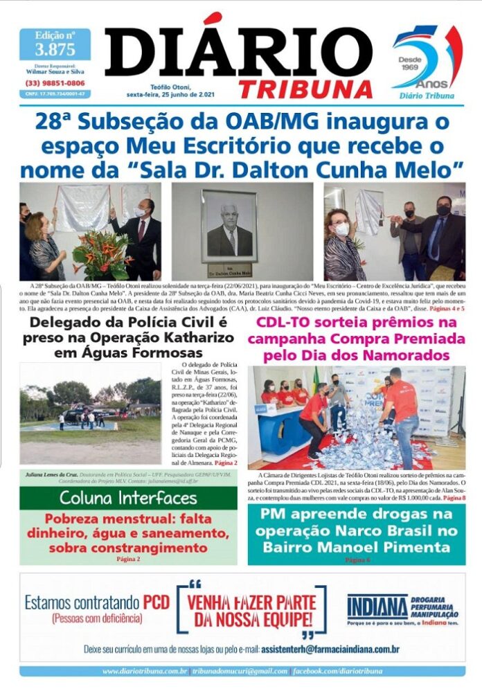 Diário Tribuna, 25 de Junho 2021, Teófilo Otoni – MG Por diariotribuna - 25/06/2021 0 742 Facebook Twitter Google+ Pinterest WhatsApp Acesse o link abaixo e veja a edição completa do Diário Tribuna desta sexta-feira (25/06/2021) https://diariotribuna.com.br/wp-content/uploads/2021/06/DIARIO-TRIBUNA-51-ANOS-25-JUNHO-2021.pdf