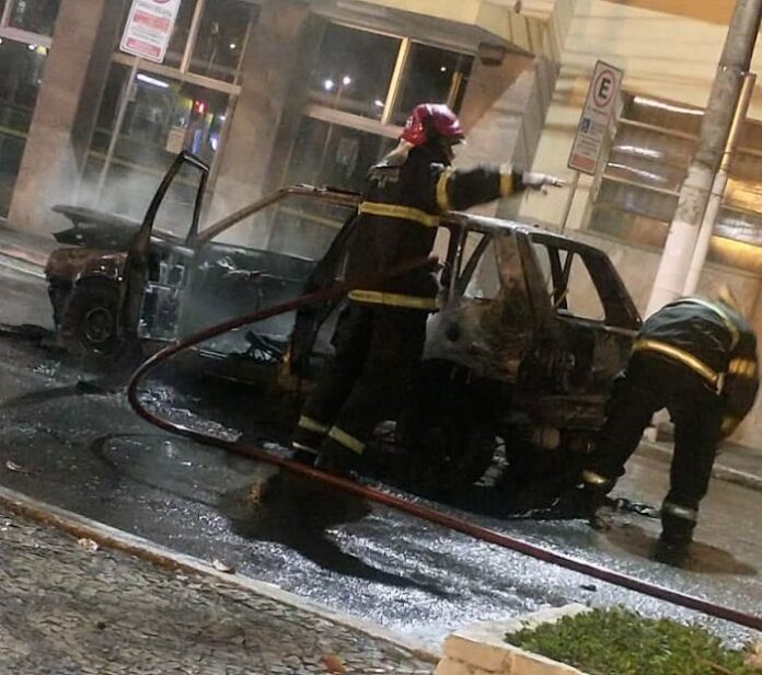 A equipe do Corpo de Bombeiros chegou com o caminhão auto bomba e imediatamente iniciou os trabalhos para debelar as chamas, mas o veículo já estava quase todo incendiado. Felizmente todos os ocupantes do carro nada sofreram. (Fotos: Divulgação/Redes sociais).