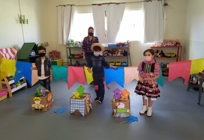 As crianças, acompanhadas por um responsável, visitaram a escola, ainda que por poucos minutos, seguindo uma escala de revezamento. Participaram de uma “pescaria”, dançaram ao som de músicas juninas, tiraram fotos com os familiares em espaços cuidadosamente produzidos e saborearam as guloseimas oferecidas a elas.