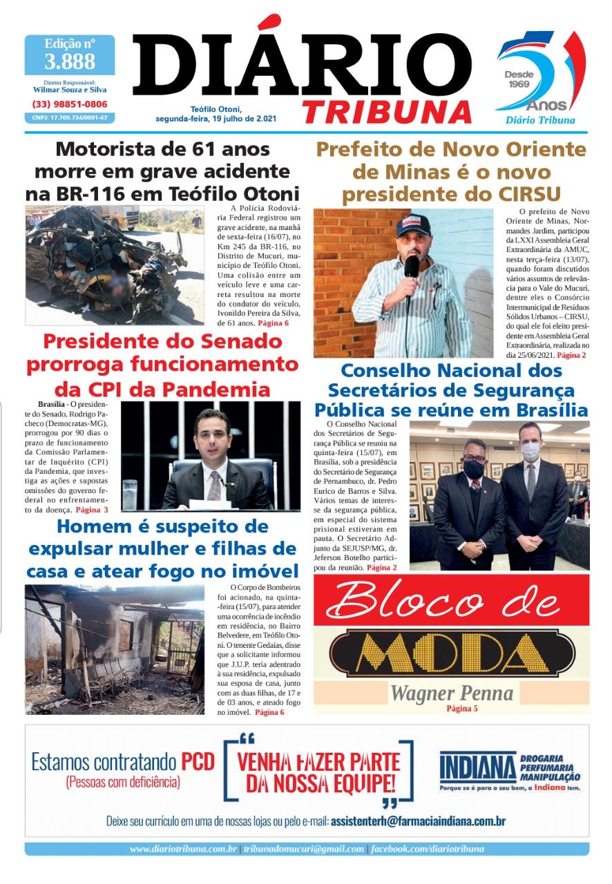 Diário Tribuna, 19 de Julho 2021, Teófilo Otoni – MG Por diariotribuna - 19/07/2021 0 409 Facebook Twitter Google+ Pinterest WhatsApp Acesse o link abaixo e veja a edição completa do Diário Tribuna desta segunda-feira (19/07/2021) https://diariotribuna.com.br/wp-content/uploads/2021/07/DIARIO-TRIBUNA-51-ANOS-19-JULHO-2021.pdf