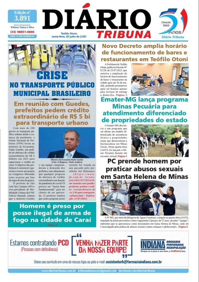 Diário Tribuna, 23 de Julho 2021, Teófilo Otoni – MG Por diariotribuna - 23/07/2021 0 756 Facebook Twitter Google+ Pinterest WhatsApp Acesse o link abaixo e veja a edição completa do Diário Tribuna desta sexta-feira (23/07/2021) https://diariotribuna.com.br/wp-content/uploads/2021/07/DIARIO-TRIBUNA-51-ANOS-23-JULHO-2021.pdf