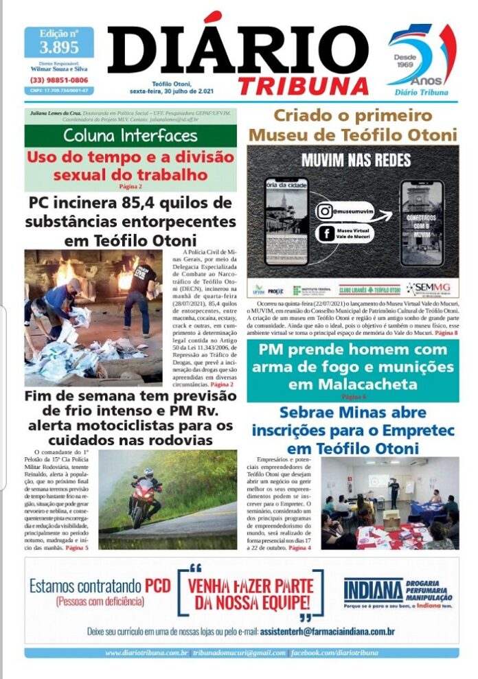 Diário Tribuna, 30 de Julho 2021, Teófilo Otoni – MG Por diariotribuna - 30/07/2021 0 755 Facebook Twitter Google+ Pinterest WhatsApp Acesse o link abaixo e veja a edição completa do Diário Tribuna desta sexta-feira (30/07/2021) https://diariotribuna.com.br/wp-content/uploads/2021/07/DIARIO-TRIBUNA-51-ANOS-30-JULHO-2021.pdf