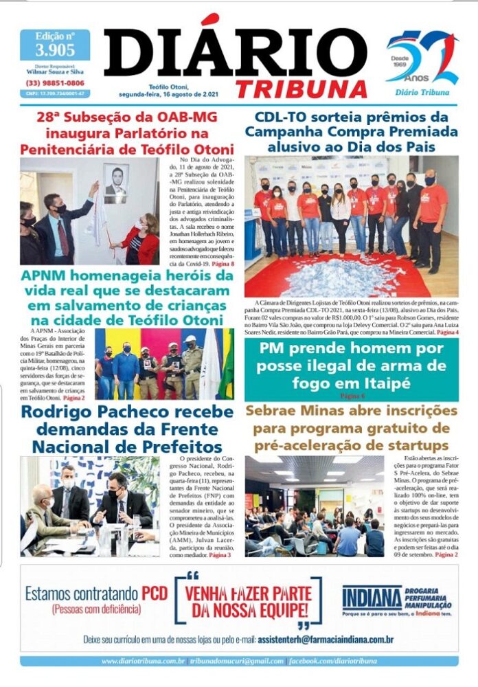 Diário Tribuna, 16 de Agosto 2021, Teófilo Otoni – MG Por diariotribuna - 16/08/2021 0 755 Facebook Twitter Google+ Pinterest WhatsApp Acesse o link abaixo e veja a edição completa do Diário Tribuna desta segunda-feira (16/08/2021) https://diariotribuna.com.br/wp-content/uploads/2021/08/DIARIO-TRIBUNA-52-ANOS-16-AGOSTO-2021.pdf