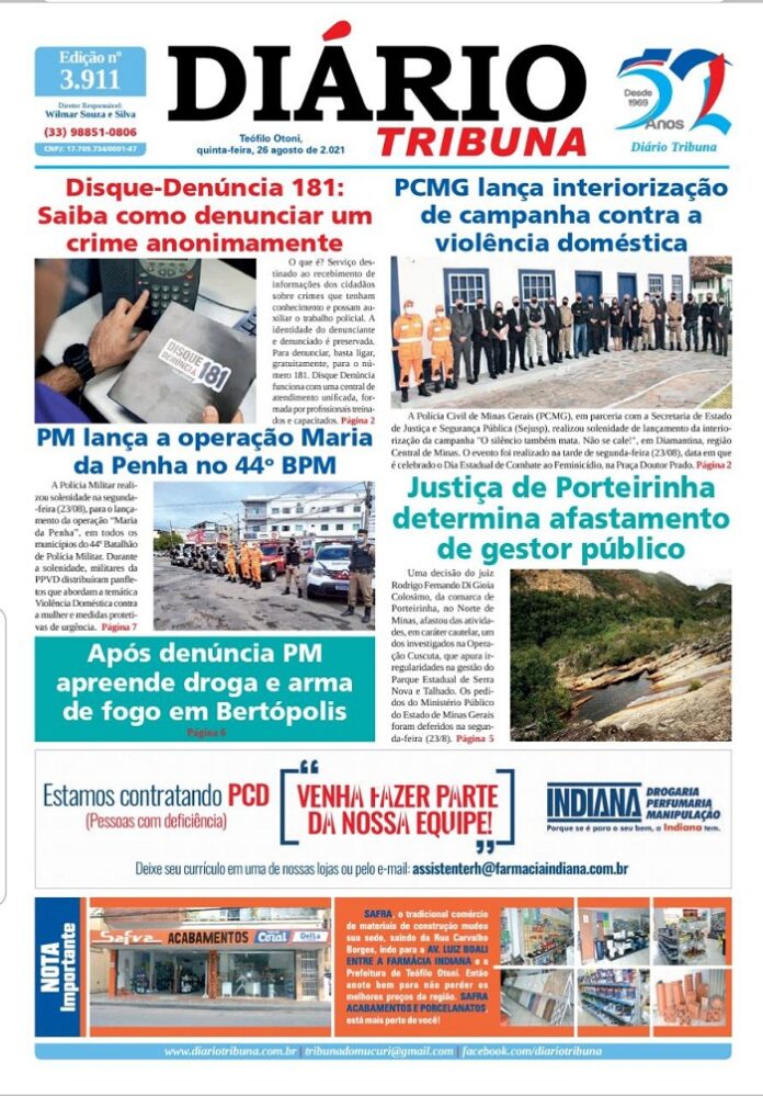 Diário Tribuna, 26 de Agosto 2021, Teófilo Otoni – MG Por diariotribuna - 26/08/2021 0 614 Facebook Twitter Google+ Pinterest WhatsApp Acesse o link abaixo e veja a edição completa do Diário Tribuna desta quinta-feira (26/08/2021) https://diariotribuna.com.br/wp-content/uploads/2021/08/DIARIO-TRIBUNA-52-ANOS-26-AGOSTO-2021-1.pdf