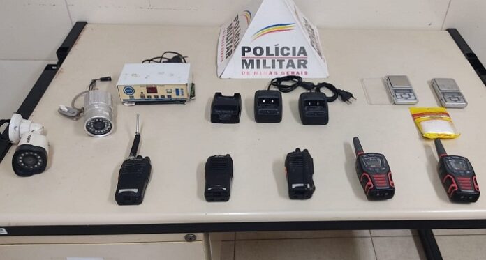 Após informações repassadas pelo serviço e inteligência do 19º Batalhão, os militares prenderam um suspeito de envolvimento com: 05 rádios comunicadores, 02 balanças de precisão, vários sacos plásticos utilizados para acondicionar drogas e 02 câmeras de videomonitoramento.