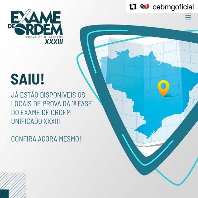 Atenção, examinandas e examinandos. A OAB Nacional, por meio da Coordenação Nacional do Exame de Ordem Unificado, divulgou na segunda-feira (11), que já estão disponíveis os locais de prova da 1ª fase do XXXIII Exame de Ordem Unificado (EOU), que acontecerá no próximo domingo, 17 de outubro de 2021, das 13h às 18h. Os portões serão abertos às 11h30 e fechados pontualmente às 12h30, sempre observado o horário oficial de Brasília.