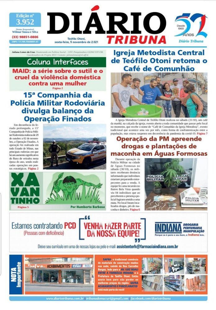 Diário Tribuna, 05 de Novembro 2021, Teófilo Otoni – MG Por diariotribuna - 05/11/2021 0 730 Facebook Twitter Google+ Pinterest WhatsApp Acesse o link abaixo e veja a edição completa do Diário Tribuna desta sexta-feira (05/11/2021) https://diariotribuna.com.br/wp-content/uploads/2021/11/DIARIO-TRIBUNA-52-ANOS-05-NOVEMBRO-2021.pdf