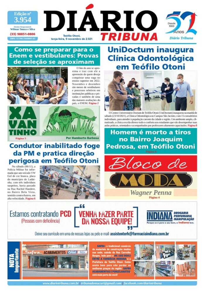 Diário Tribuna, 09 de Novembro 2021, Teófilo Otoni – MG Por diariotribuna - 09/11/2021 0 662 Facebook Twitter Google+ Pinterest WhatsApp Acesse o link abaixo e veja a edição completa do Diário Tribuna desta terça-feira (09/11/2021) https://diariotribuna.com.br/wp-content/uploads/2021/11/DIARIO-TRIBUNA-52-ANOS-09-NOVEMBRO-2021.pdf
