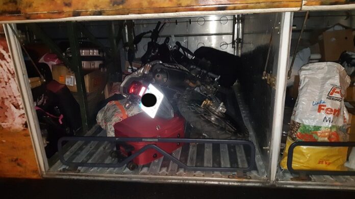 A motocicleta estava sendo transportada no bagageiro de um ônibus sentido Pedra Azul