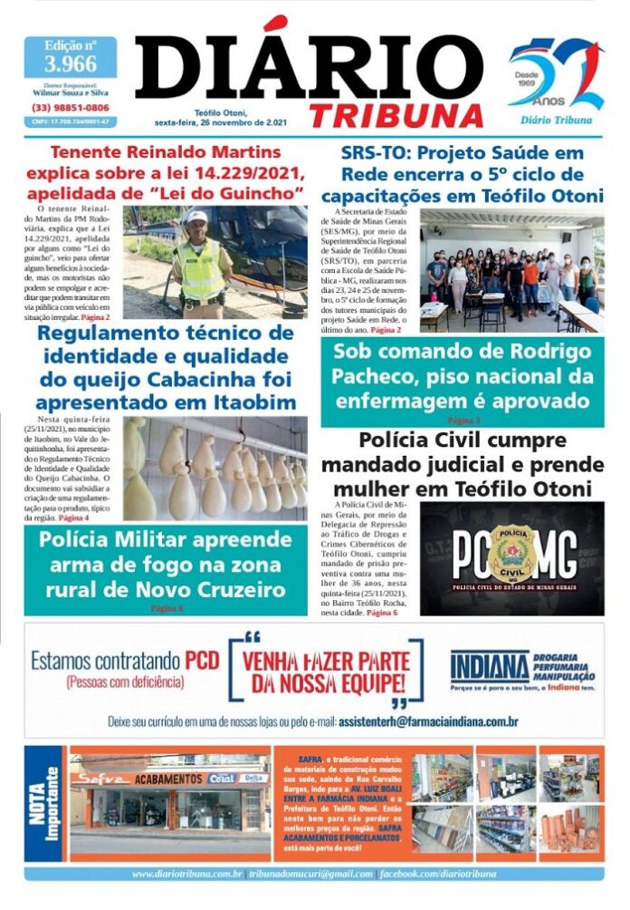 Diário Tribuna, 26 de Novembro 2021, Teófilo Otoni – MG Por diariotribuna - 26/11/2021 0 473 Facebook Twitter Google+ Pinterest WhatsApp Acesse o link abaixo e veja a edição completa do Diário Tribuna desta sexta-feira (26/11/2021) https://diariotribuna.com.br/wp-content/uploads/2021/11/DIARIO-TRIBUNA-52-ANOS-26-NOVEMBRO-2021.pdf