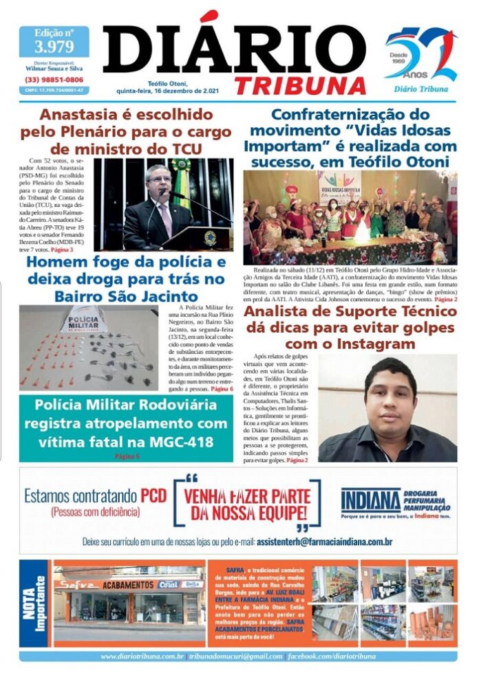 Diário Tribuna, 16 de Dezembro 2021, Teófilo Otoni – MG Por diariotribuna - 16/12/2021 0 763 Facebook Twitter Google+ Pinterest WhatsApp Acesse o link abaixo e veja a edição completa do Diário Tribuna desta quinta-feira (16/12/2021) https://diariotribuna.com.br/wp-content/uploads/2021/12/DIARIO-TRIBUNA-52-ANOS-16-DEZEMBRO-2021.pdf