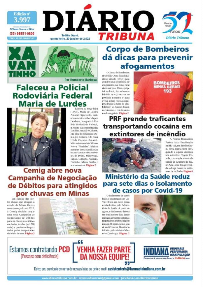 Diário Tribuna, 20 de Janeiro 2022, Teófilo Otoni – MG Por diariotribuna - 20/01/2022 0 592 Facebook Twitter Google+ Pinterest WhatsApp Acesse o link abaixo e veja a edição completa do Diário Tribuna desta quinta-feira (20/01/2022) https://diariotribuna.com.br/wp-content/uploads/2022/01/DIARIO-TRIBUNA-52-ANOS-20-JANEIRO-2022.pdf