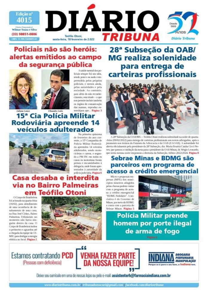 Diário Tribuna, 18 de Fevereiro 2022, Teófilo Otoni – MG Por diariotribuna - 18/02/2022 0 881 Facebook Twitter Google+ Pinterest WhatsApp Acesse o link abaixo e veja a edição completa do Diário Tribuna desta sexta-feira (18/02/2022) https://diariotribuna.com.br/wp-content/uploads/2022/02/DIARIO-TRIBUNA-52-ANOS-18-FEVEREIRO-2022.pdf