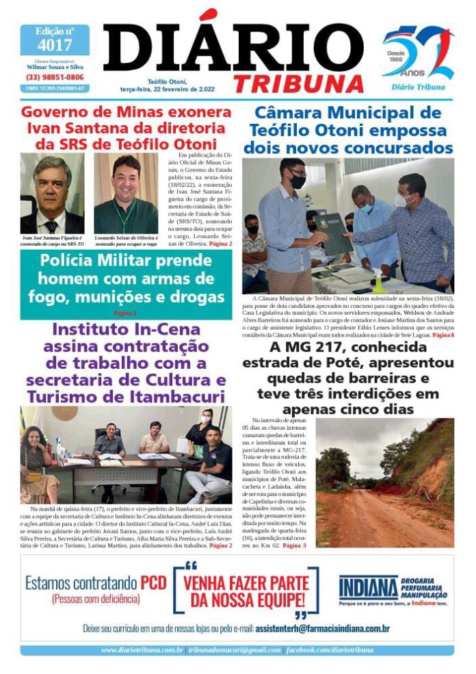 Diário Tribuna, 22 de Fevereiro 2022, Teófilo Otoni – MG Por diariotribuna - 22/02/2022 0 515 Facebook Twitter Google+ Pinterest WhatsApp Acesse o link abaixo e veja a edição completa do Diário Tribuna desta terça-feira (22/02/2022) https://diariotribuna.com.br/wp-content/uploads/2022/02/DIARIO-TRIBUNA-52-ANOS-22-FEVEREIRO-2022.pdf