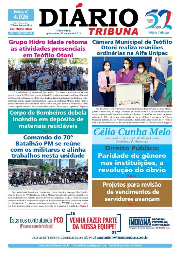 Diário Tribuna, 10 de Março 2022, Teófilo Otoni – MG Por diariotribuna - 10/03/2022 0 745 Facebook Twitter Google+ Pinterest WhatsApp Acesse o link abaixo e veja a edição completa do Diário Tribuna desta quinta-feira (10/03/2022) https://diariotribuna.com.br/wp-content/uploads/2022/03/DIARIO-TRIBUNA-52-ANOS-10-MARCO-2022.pdf