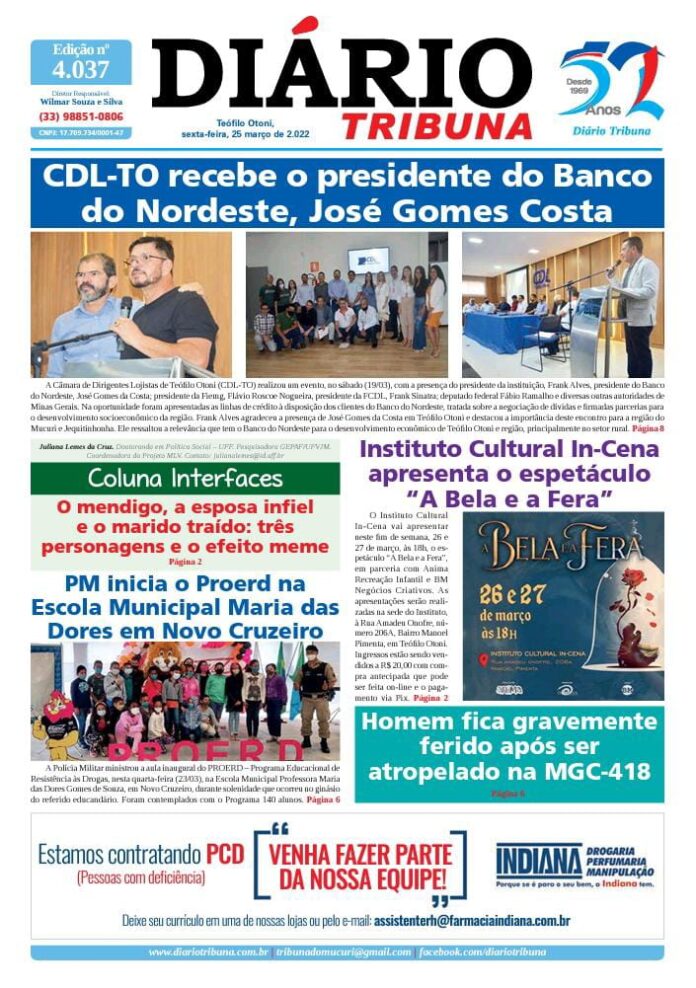 Diário Tribuna, 25 de Março 2022, Teófilo Otoni – MG Por diariotribuna - 25/03/2022 0 667 Facebook Twitter Google+ Pinterest WhatsApp Acesse o link abaixo e veja a edição completa do Diário Tribuna desta sexta-feira (25/03/2022) https://diariotribuna.com.br/wp-content/uploads/2022/03/DIARIO-TRIBUNA-52-ANOS-25-MARCO-2022.pdf