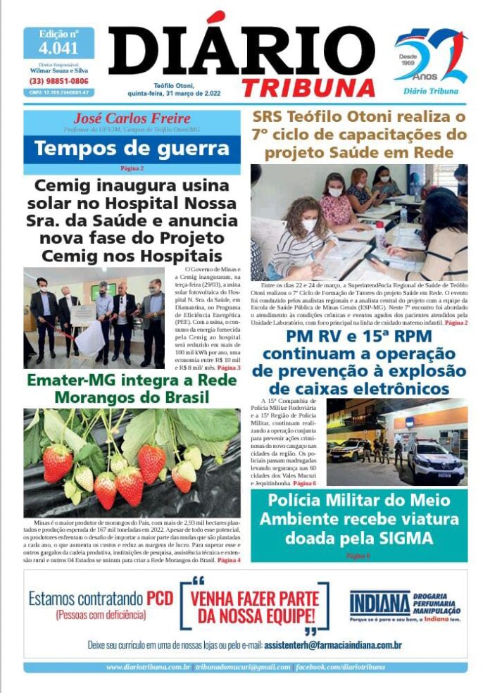 Diário Tribuna, 31 de Março 2022, Teófilo Otoni – MG Por diariotribuna - 31/03/2022 0 726 Facebook Twitter Google+ Pinterest WhatsApp Acesse o link abaixo e veja a edição completa do Diário Tribuna desta quinta-feira (31/03/2022) https://diariotribuna.com.br/wp-content/uploads/2022/03/DIARIO-TRIBUNA-52-ANOS-31-MARCO-2022.pdf