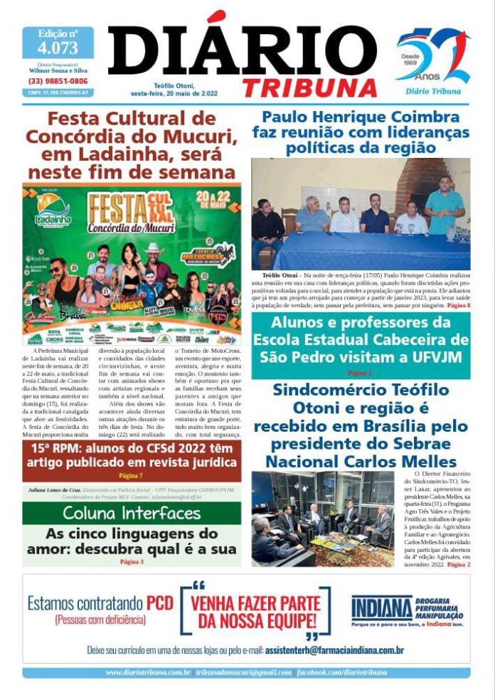 Diário Tribuna, 20 de Maio 2022, Teófilo Otoni – MG Por diariotribuna - 20/05/2022 0 710 Facebook Twitter Google+ Pinterest WhatsApp Acesse o link abaixo e veja a edição completa do Diário Tribuna desta sexta-feira (20/05/2022) https://diariotribuna.com.br/wp-content/uploads/2022/05/DIARIO-TRIBUNA-52-ANOS-20-MAIO-2022.pdf