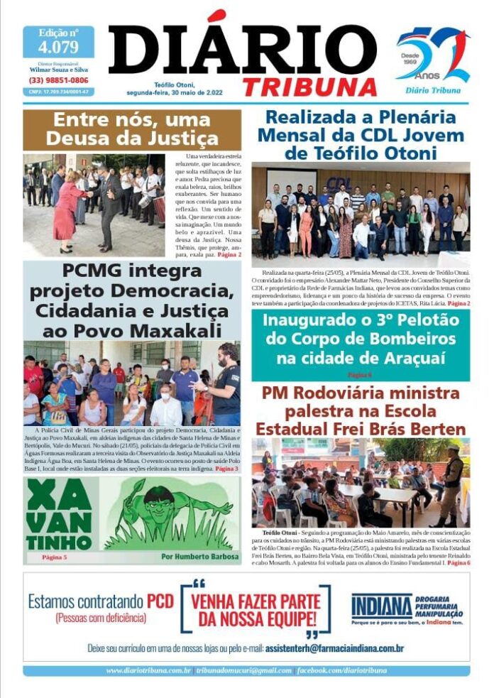 Diário Tribuna, 30 de Maio 2022, Teófilo Otoni – MG Por diariotribuna - 30/05/2022 0 572 Facebook Twitter Google+ Pinterest WhatsApp Acesse o link abaixo e veja a edição completa do Diário Tribuna desta segunda-feira (30/05/2022) https://diariotribuna.com.br/wp-content/uploads/2022/05/DIARIO-TRIBUNA-52-ANOS-30-MAIO-2022.pdf
