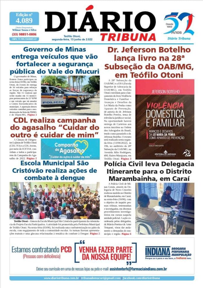 Diário Tribuna, 13 de Junho 2022, Teófilo Otoni – MG Por diariotribuna - 13/06/2022 0 641 Facebook Twitter Google+ Pinterest WhatsApp Acesse o link abaixo e veja a edição completa do Diário Tribuna desta segunda-feira (13/06/2022) https://diariotribuna.com.br/wp-content/uploads/2022/06/DIARIO-TRIBUNA-52-ANOS-13-JUNHO-2022.pdf
