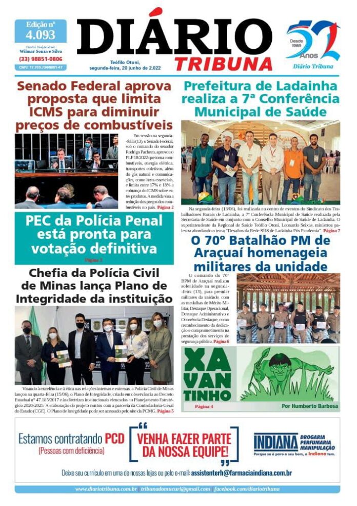 Diário Tribuna, 20 de Junho 2022, Teófilo Otoni – MG Por diariotribuna - 20/06/2022 0 416 Facebook Twitter Google+ Pinterest WhatsApp Acesse o link abaixo e veja a edição completa do Diário Tribuna desta segunda-feira (20/06/2022) https://diariotribuna.com.br/wp-content/uploads/2022/06/DIARIO-TRIBUNA-52-ANOS-20-JUNHO-2022.pdf