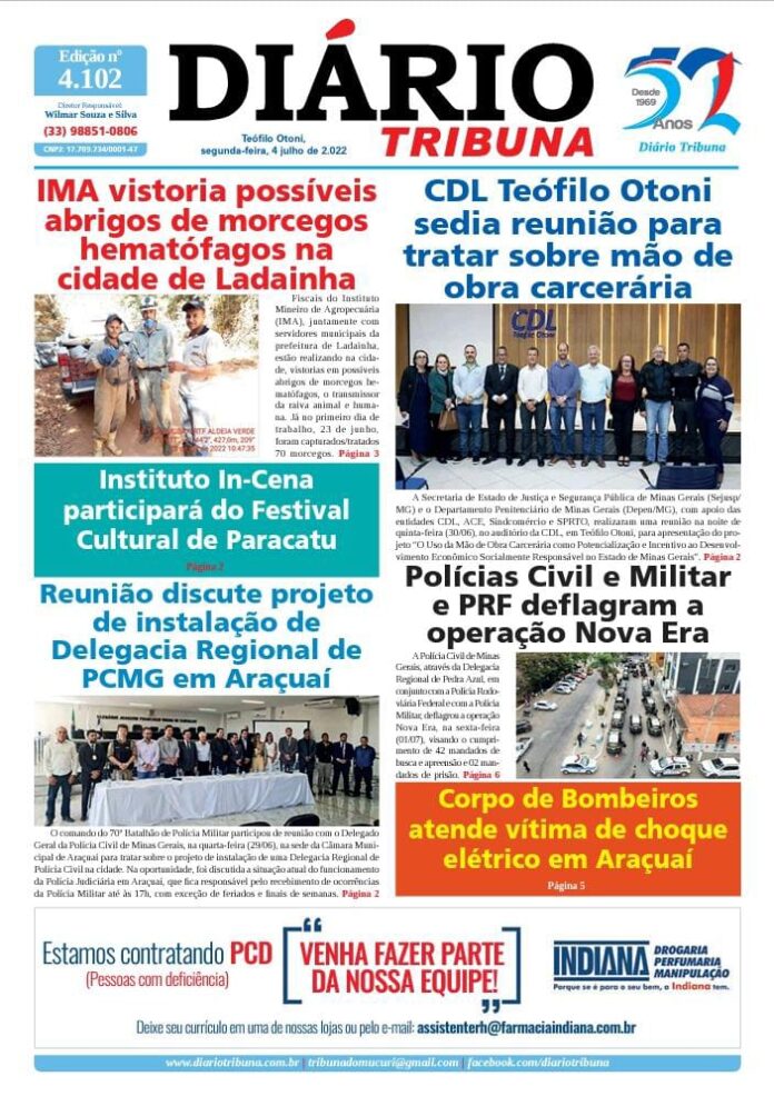 Diário Tribuna, 04 de Julho 2022, Teófilo Otoni – MG Por diariotribuna - 04/07/2022 0 424 Facebook Twitter Google+ Pinterest WhatsApp Acesse o link abaixo e veja a edição completa do Diário Tribuna desta segunda-feira (04/07/2022) https://diariotribuna.com.br/wp-content/uploads/2022/07/DIARIO-TRIBUNA-52-ANOS-04-JULHO-2022-1.pdf