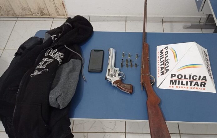 Resultado da ação da Polícia Militar: foram apreendidos, 01 revólver calibre 38 Special, 01 espingarda polveira, 03 munições calibre 38 intactas, 07 munições calibre 38 deflagradas e 01 aparelho de telefone celular. Três pessoas presas. Equipes: tenente Luiz Carlos e soldado Vieira, sargento Paulo e soldado Teles, sargento Pinheiro e soldado Alex. (Informações/Foto: PMMG, 44º BPM, Almenara).