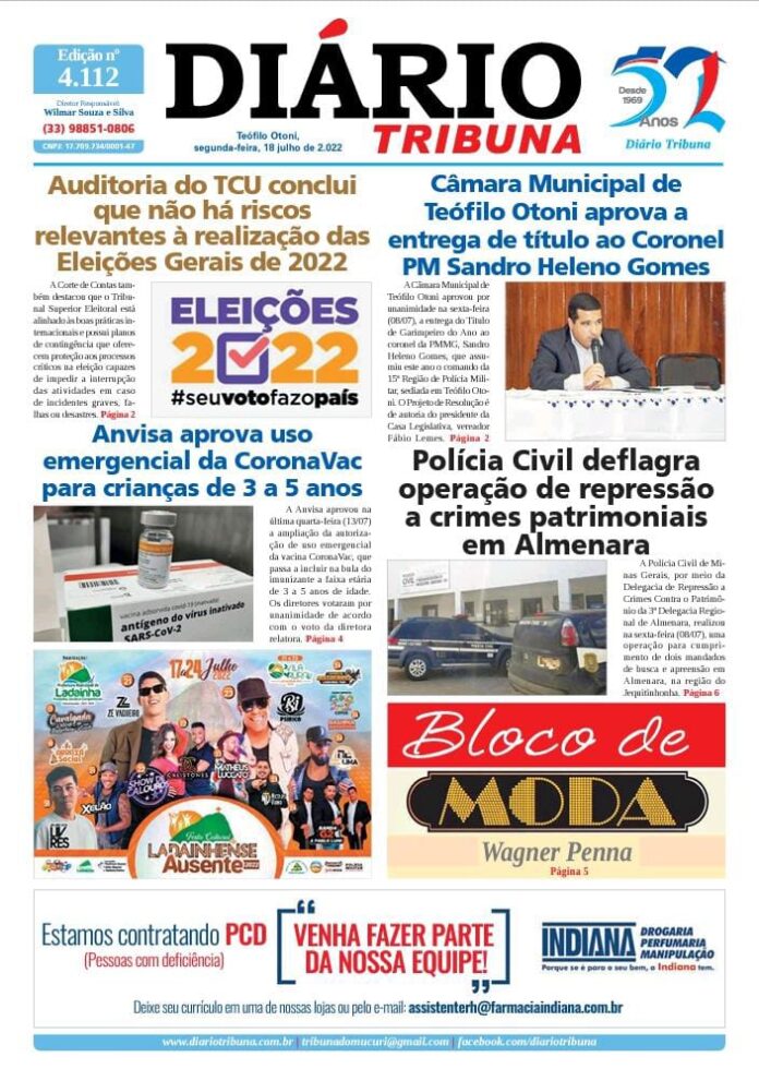 Diário Tribuna, 18 de Julho 2022, Teófilo Otoni – MG Por diariotribuna - 18/07/2022 0 270 Facebook Twitter Google+ Pinterest WhatsApp Acesse o link abaixo e veja a edição completa do Diário Tribuna desta segunda-feira (18/07/2022) https://diariotribuna.com.br/wp-content/uploads/2022/07/DIARIO-TRIBUNA-52-ANOS-18-JULHO-2022.pdf