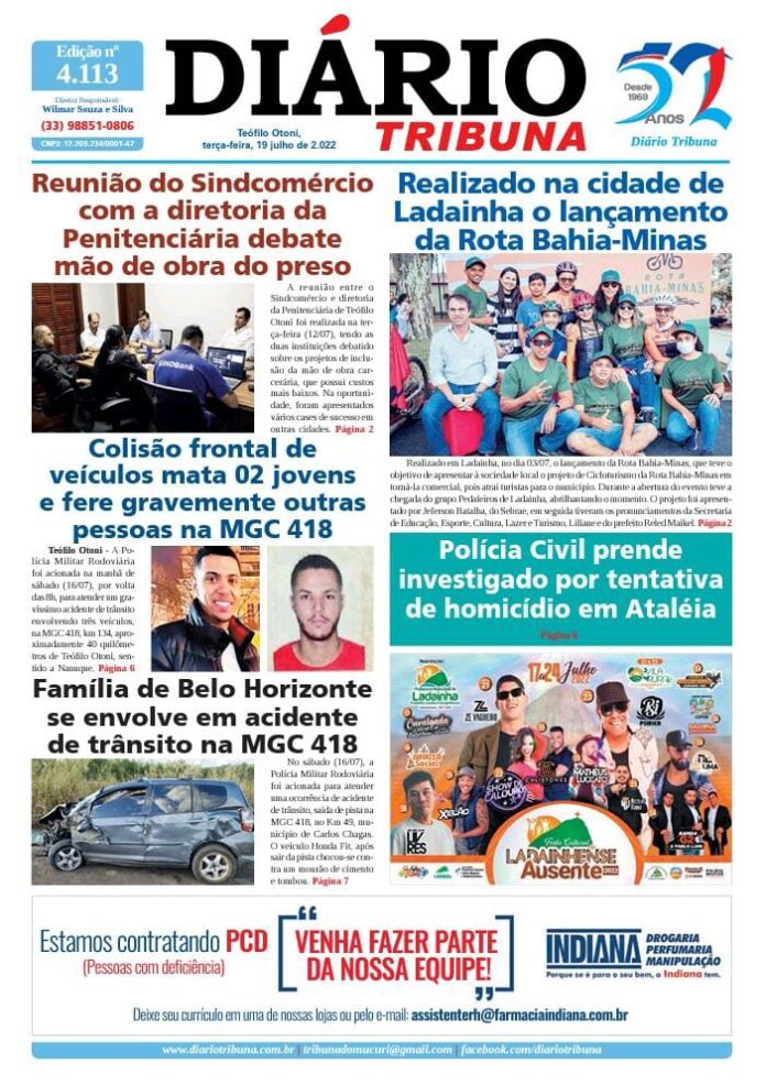 Diário Tribuna, 19 de Julho 2022, Teófilo Otoni – MG Por diariotribuna - 19/07/2022 0 415 Facebook Twitter Google+ Pinterest WhatsApp Acesse o link abaixo e veja a edição completa do Diário Tribuna desta terça-feira (19/07/2022) https://diariotribuna.com.br/wp-content/uploads/2022/07/DIARIO-TRIBUNA-52-ANOS-19-JULHO-2022.pdf