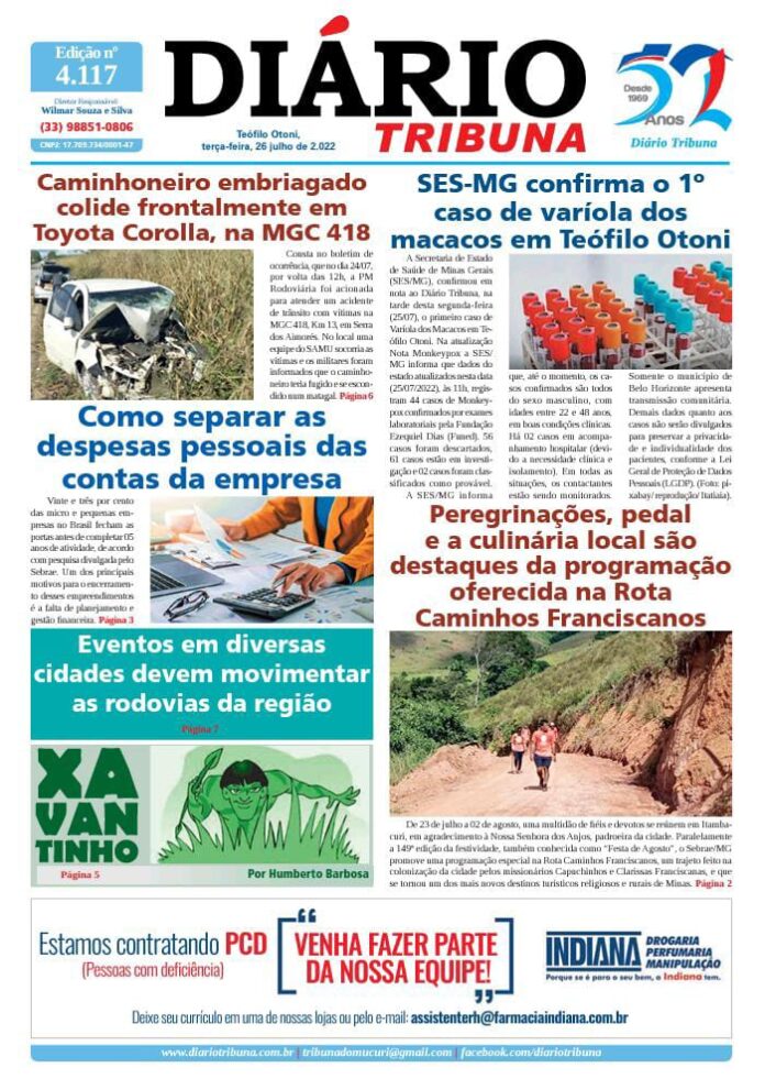 Diário Tribuna, 26 de Julho 2022, Teófilo Otoni – MG Por diariotribuna - 26/07/2022 0 592 Facebook Twitter Google+ Pinterest WhatsApp Acesse o link abaixo e veja a edição completa do Diário Tribuna desta terça-feira (26/07/2022) https://diariotribuna.com.br/wp-content/uploads/2022/07/DIARIO-TRIBUNA-52-ANOS-26-JULHO-2022.pdf
