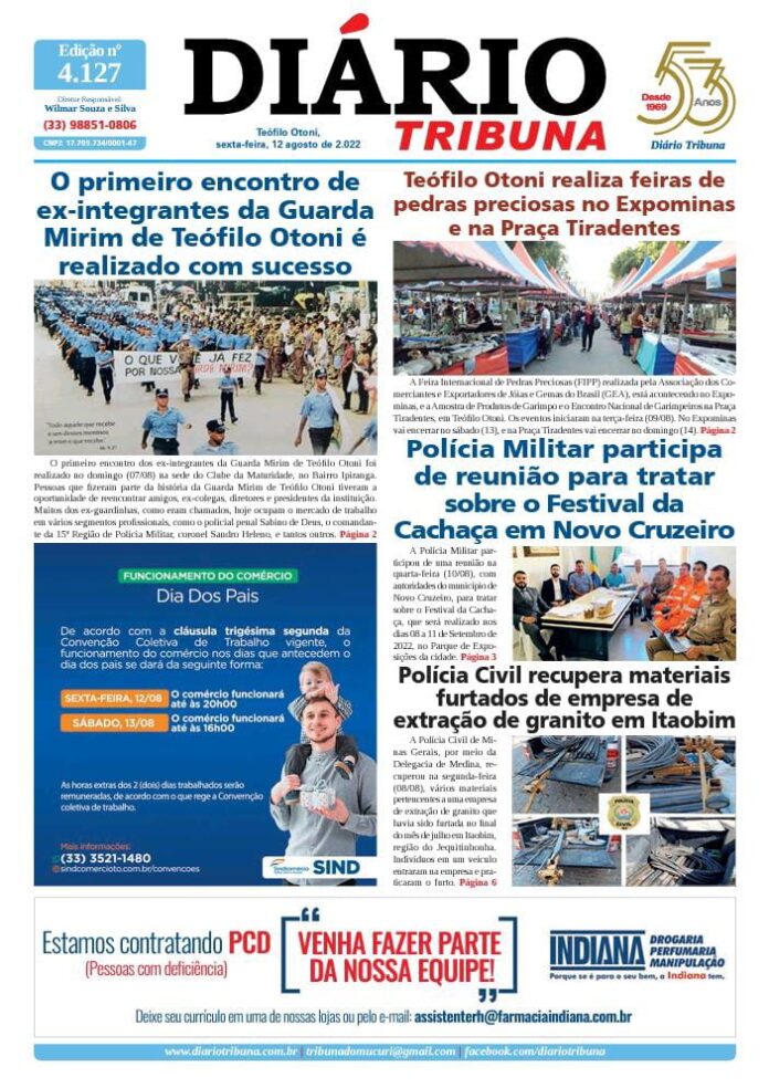 Diário Tribuna, 12 de Agosto 2022, Teófilo Otoni – MG Por diariotribuna - 12/08/2022 0 263 Facebook Twitter Google+ Pinterest WhatsApp Acesse o link abaixo e veja a edição completa do Diário Tribuna desta sexta-feira (12/08/2022) https://diariotribuna.com.br/wp-content/uploads/2022/08/DIARIO-TRIBUNA-52-ANOS-12-AGOSTO-2022.pdf