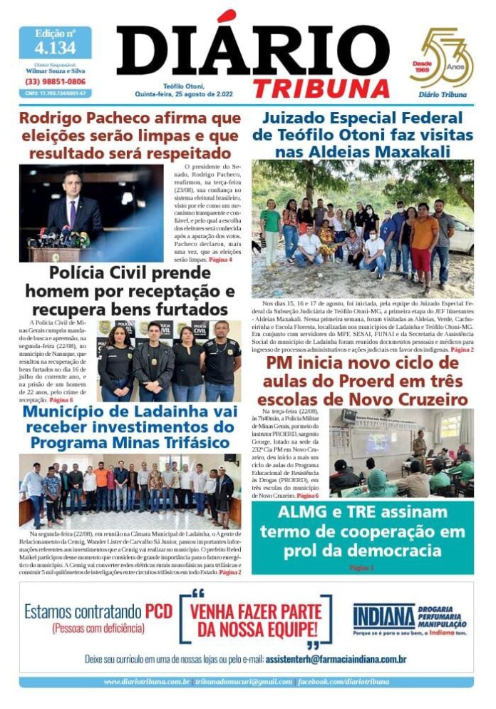Diário Tribuna, 25 de Agosto 2022, Teófilo Otoni – MG Por diariotribuna - 25/08/2022 0 297 Facebook Twitter Google+ Pinterest WhatsApp Acesse o link abaixo e veja a edição completa do Diário Tribuna desta quinta-feira (25/08/2022) https://diariotribuna.com.br/wp-content/uploads/2022/08/DIARIO-TRIBUNA-53-ANOS-25-AGOSTO-2022-1.pdf