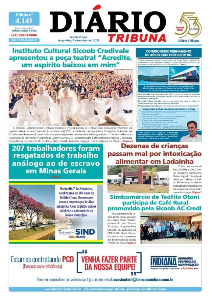 Diário Tribuna, 06 de Setembro 2022, Teófilo Otoni – MG Por diariotribuna - 06/09/2022 0 256 Facebook Twitter Google+ Pinterest WhatsApp Acesse o link abaixo e veja a edição completa do Diário Tribuna desta terça-feira (06/09/2022) https://diariotribuna.com.br/wp-content/uploads/2022/09/DIARIO-TRIBUNA-53-ANOS-06-SETEMBRO-2022.pdf