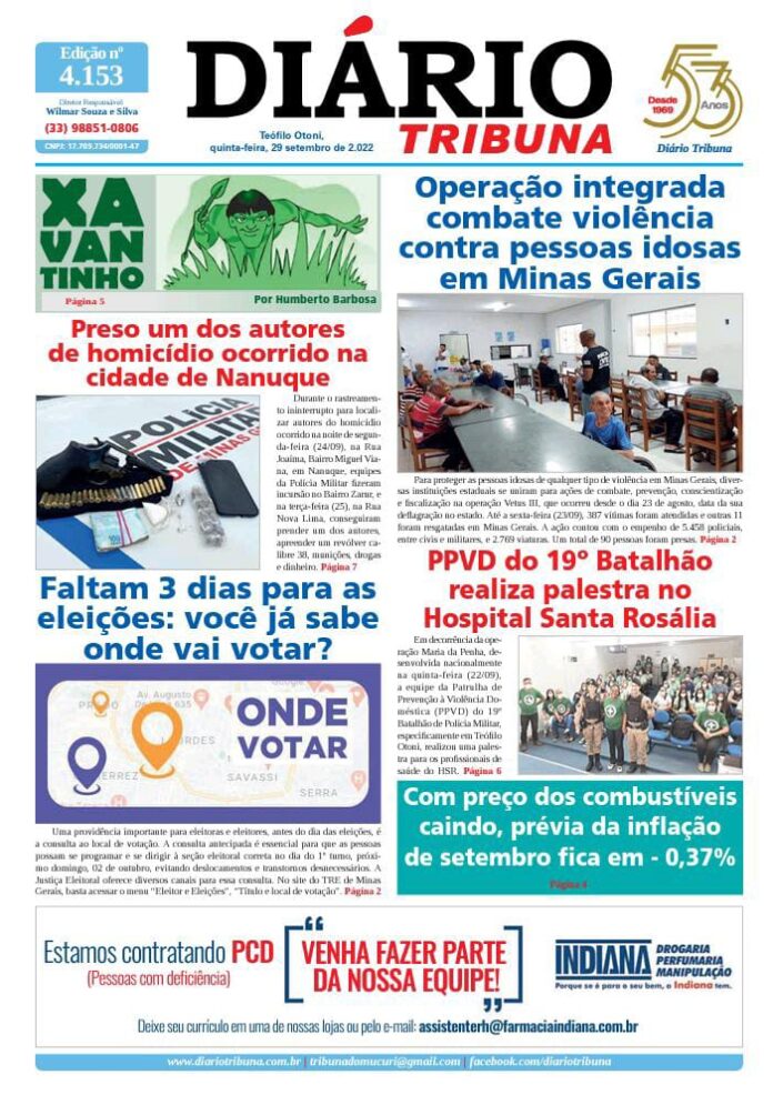 Diário Tribuna, 29 de Setembro 2022, Teófilo Otoni – MG Por diariotribuna - 29/09/2022 0 345 Facebook Twitter Google+ Pinterest WhatsApp Acesse o link abaixo e veja a edição completa do Diário Tribuna desta quinta-feira (29/09/2022) https://diariotribuna.com.br/wp-content/uploads/2022/09/DIARIO-TRIBUNA-53-ANOS-29-SETEMBRO-2022.pdf