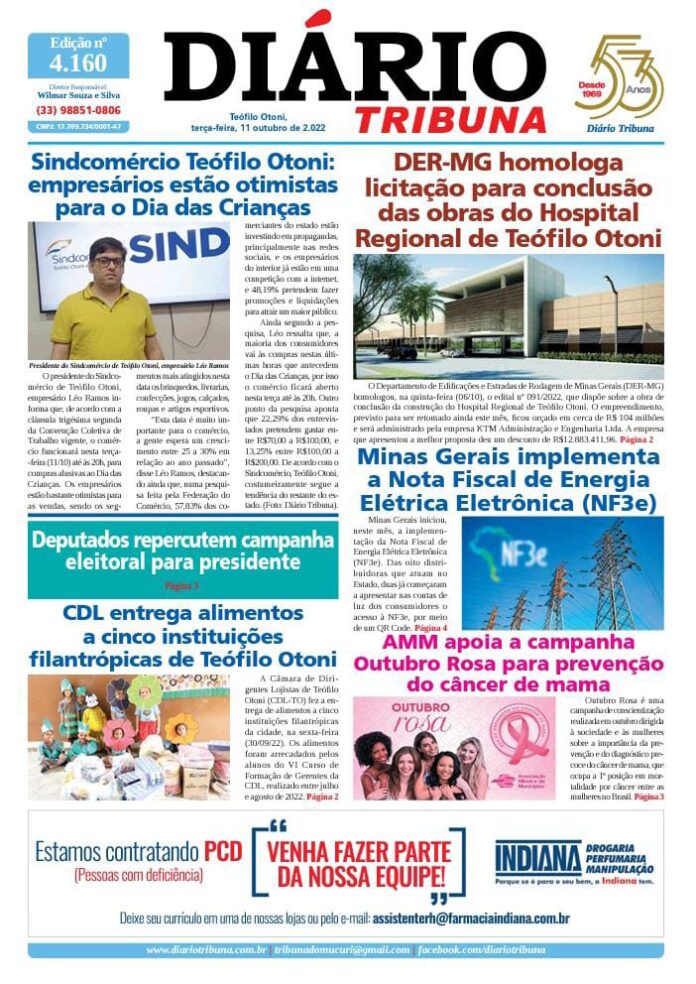 Diário Tribuna, 11 de Outubro 2022, Teófilo Otoni – MG Por diariotribuna - 11/10/2022 0 260 Facebook Twitter Google+ Pinterest WhatsApp Acesse o link abaixo e veja a edição completa do Diário Tribuna desta terça-feira (11/10/2022) https://diariotribuna.com.br/wp-content/uploads/2022/10/DIARIO-TRIBUNA-53-ANOS-11-OUTUBRO-2022.pdf