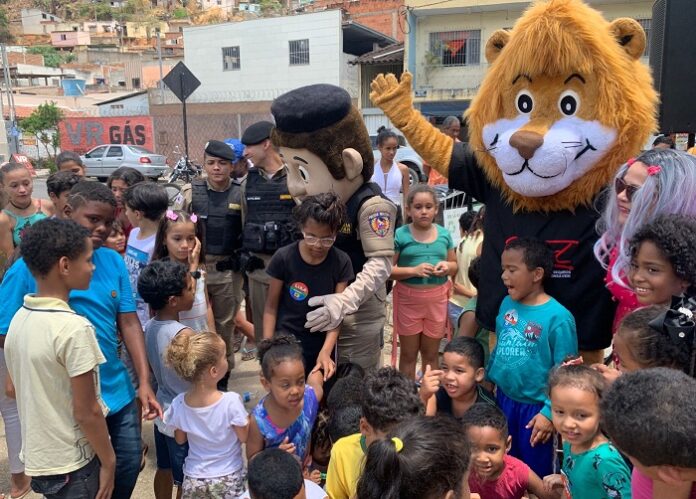 Teófilo Otoni – Na quarta-feira (12/10), militares pertencentes ao GEPAR (Grupo Especializado em Patrulhamento de Área de Risco) do 19º BPM, em parceria com a 15ª Região de Polícia Militar (RPM), e as associações: Ascombater e Associação de Moradores do Bairro Pindorama, realizaram duas ações sociais, em comemoração ao dia das crianças. As atividades contaram com a presença da Banda de Música da 15ª RPM, de militares da 221ª Cia de Ensino e Treinamento, do PM Amigo Legal e do Mascote do Proerd, o Leão Dare.